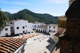 We drove to the mountains today. We parked up in the village of Aracena, then walked down a lovely path between olive and cork plantations.